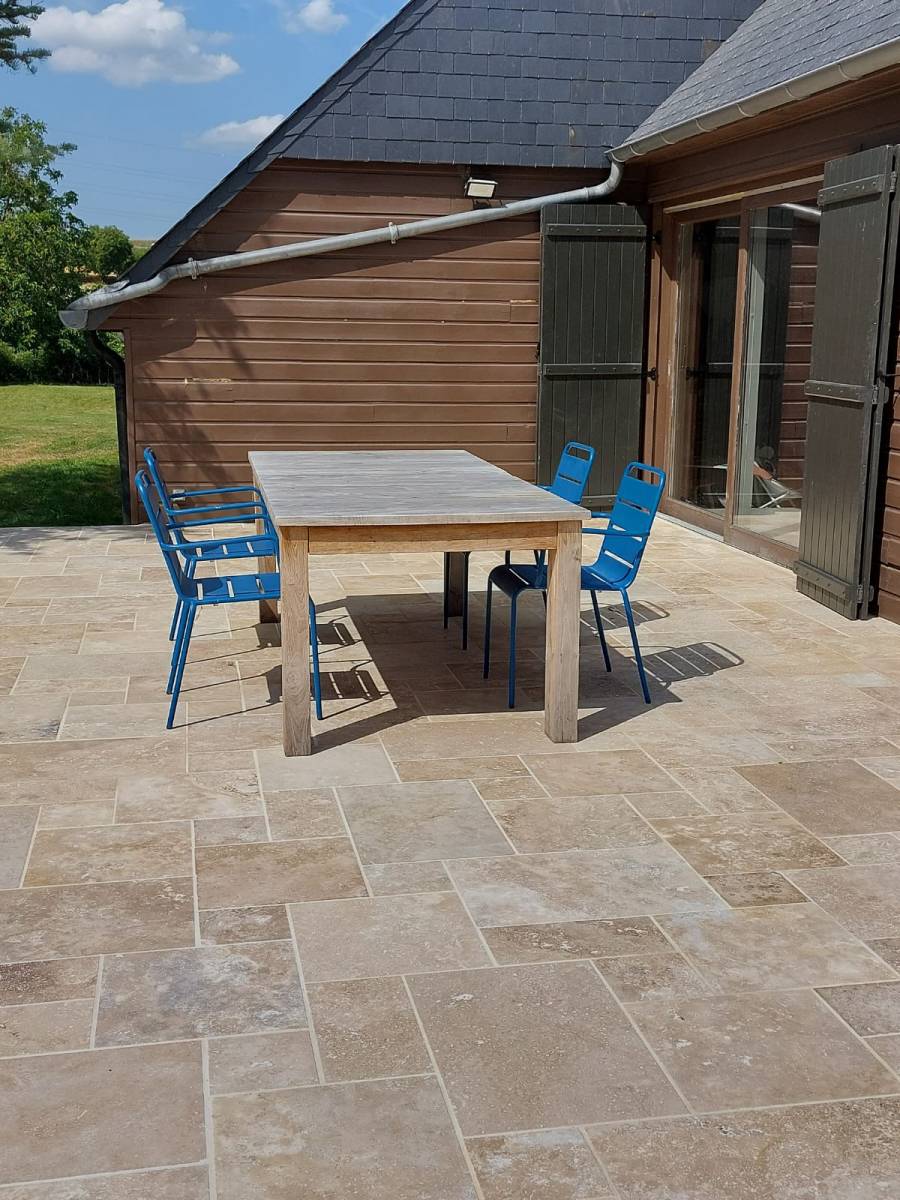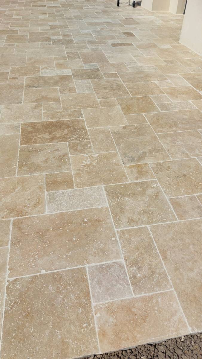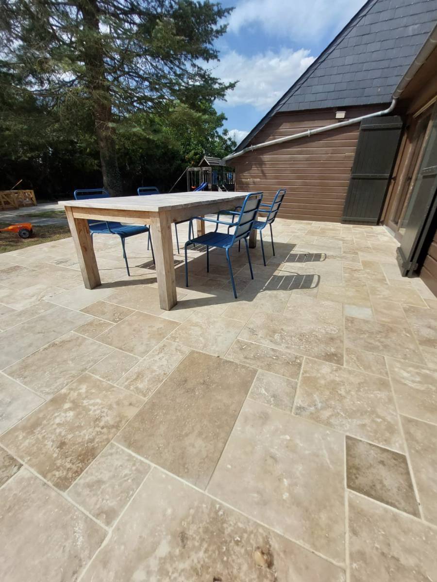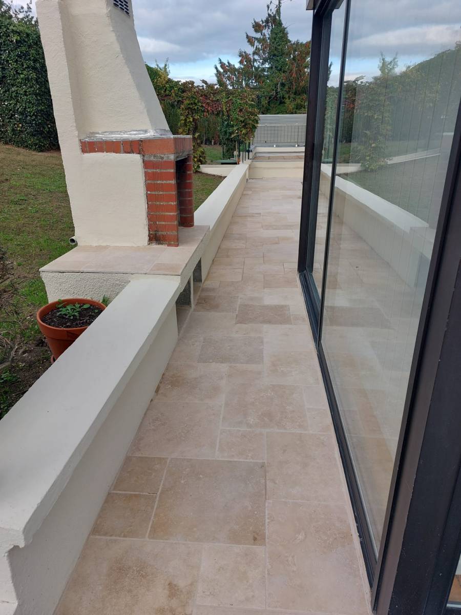 Réfection d'une terrasse avec dallage Travertin (avant)