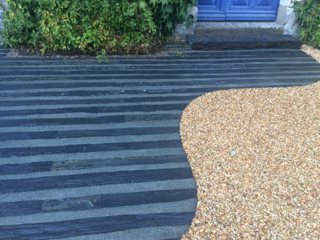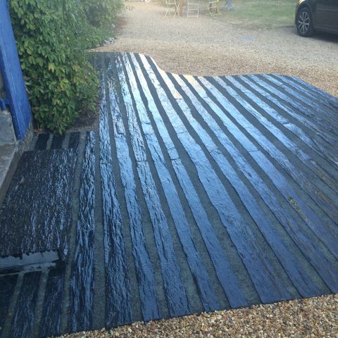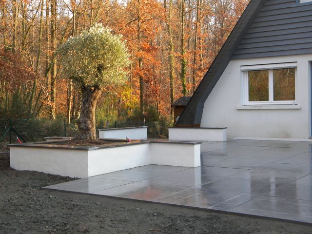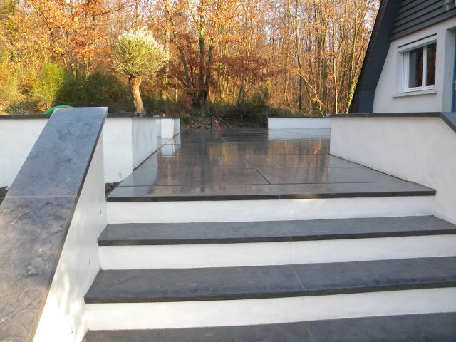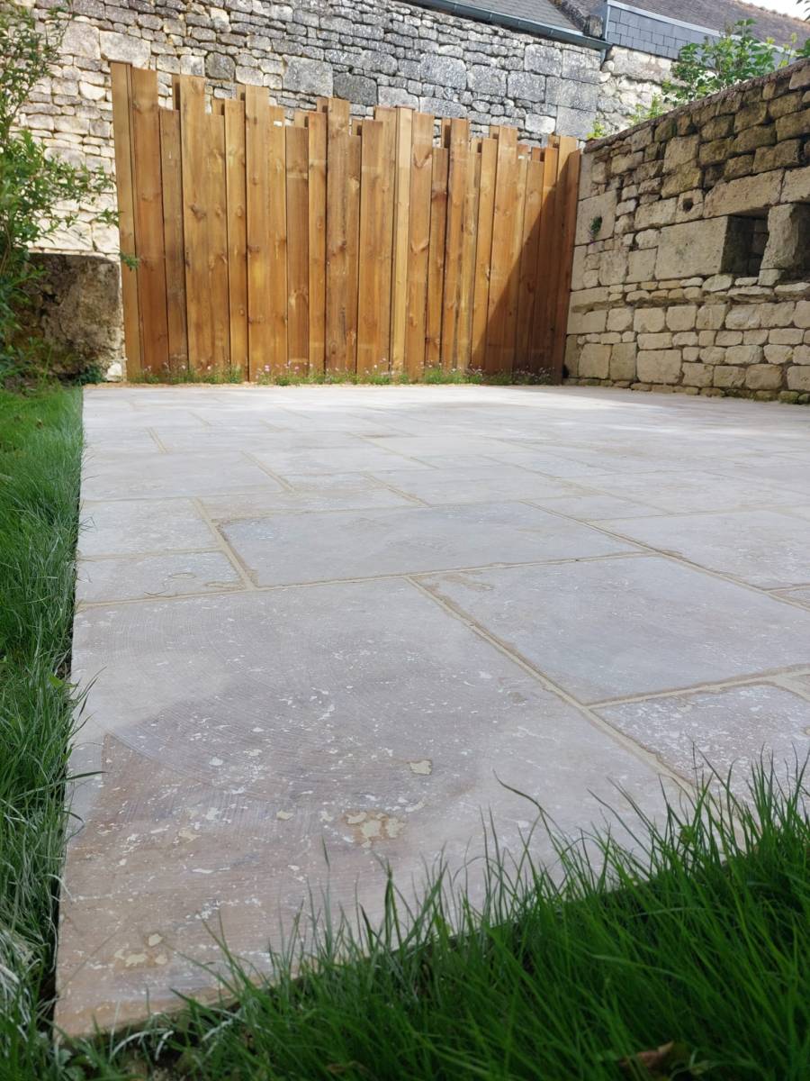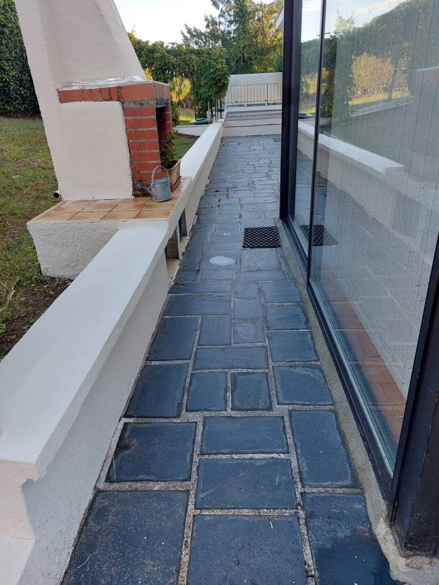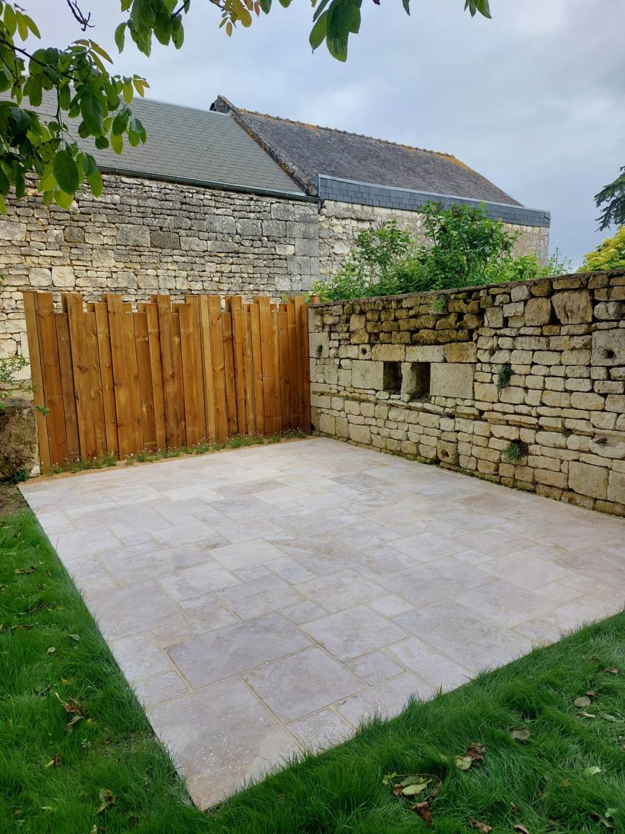 Réfection d'une terrasse avec dallage Travertin (avant)